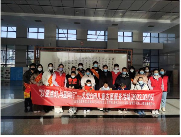 有一群孩子,就像天上的星星,一人一个世界,他们是自闭症儿童。为了让这些星星般的孩子得到更多的关注与陪伴,3月5日,在全国第60个“学雷锋纪念日”,我校信息工程学院与美术与设计学院携手盐城市残疾人教育康复中心,在盐城市图书馆开展“以爱点灯,与星同行”关爱自闭症儿童志愿服务活动。